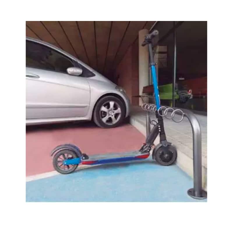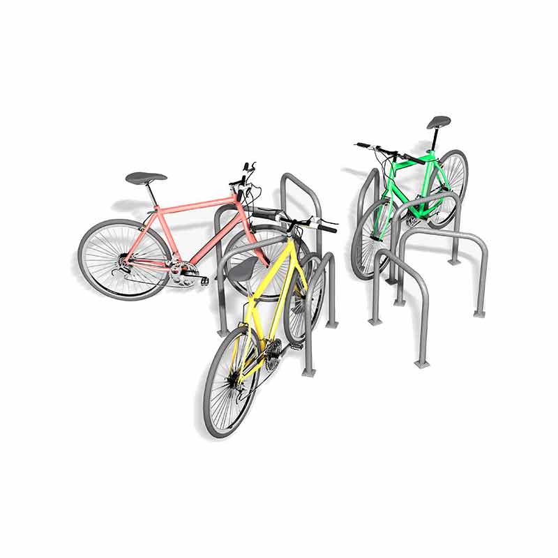 La aparcabicicletas, permiten el estacionamiento de las bicicletas, una a cada lado de las barras, para garantizar la seguridad de las mismas. Estas pueden ser metálicas o de acero inoxidable.